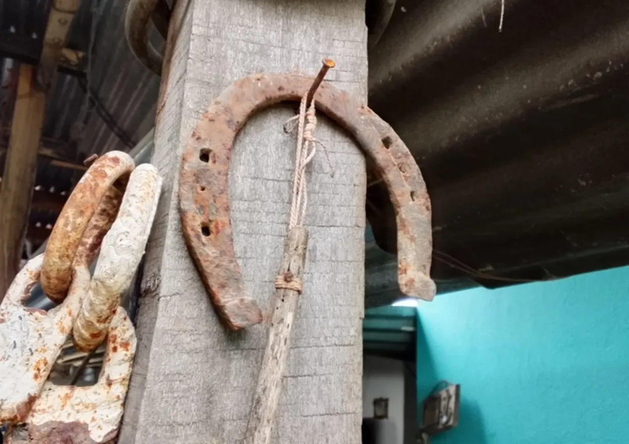 Características, materiales y uso: Pieza de hierro con forma de media luna, colocada en los cascos de los caballos para protegerlos del desgaste. En muchos hogares rurales se conserva como amuleto de buena suerte, colgada boca abajo o hacia arriba según la tradición.