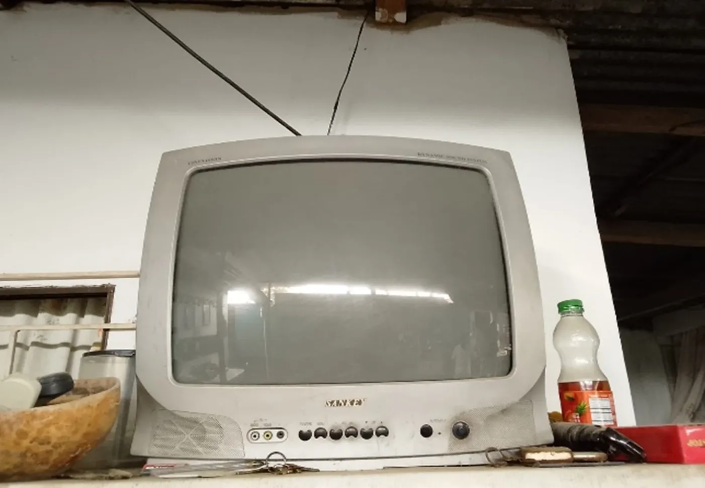 Características, materiales y uso: Televisor de tubo (CRT) con carcasa plástica y pantalla curva. Funcionaba con antena o cable y era el principal medio de entretenimiento familiar.